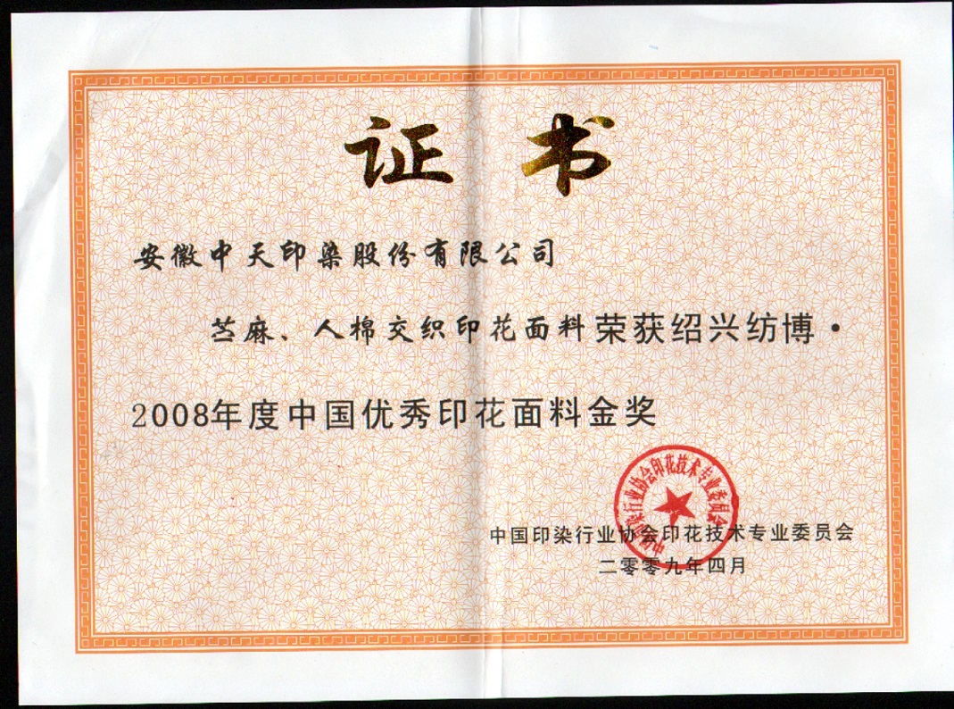 苧麻、人棉交織印花面料榮獲中國(guó)優(yōu)秀印花面料金獎(jiǎng)